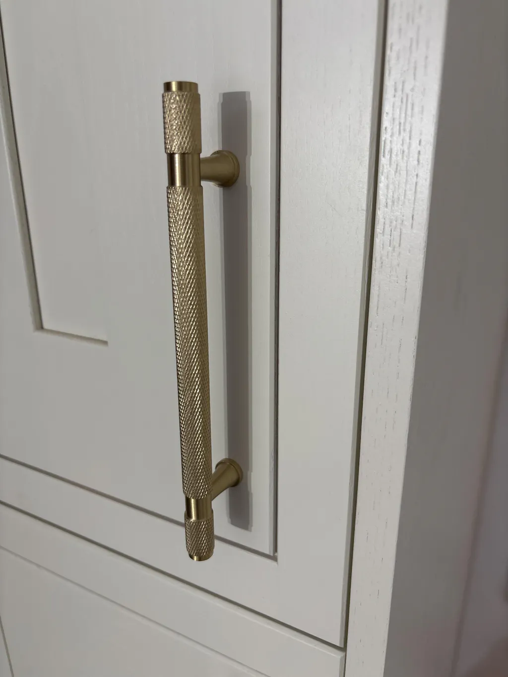 • Elevate your kitchen decor with our Solid Brass Knurled Cupboard Bar Handles. With a beautiful brass finish, these handles add a touch of elegance and complement other brass accents in the room. The brushed texture softens the gold tone, resulting in a subtle enhancement to your cabinets.