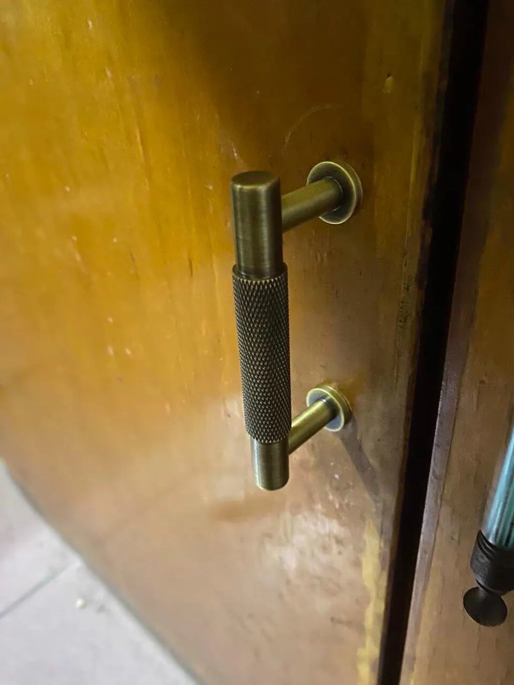 Modern Brass Knurled Handles for Kitchen Cabinets