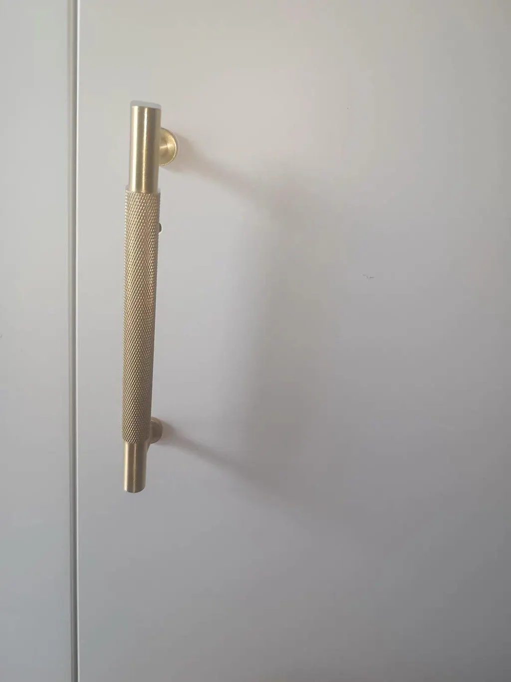 • Upgrade your kitchen with our Modern Brass Knurled Handles. Featuring a sleek, knurled texture for a secure grip and a touch of sophistication, these handles add contemporary elegance to your cabinets while enhancing both style and functionality.