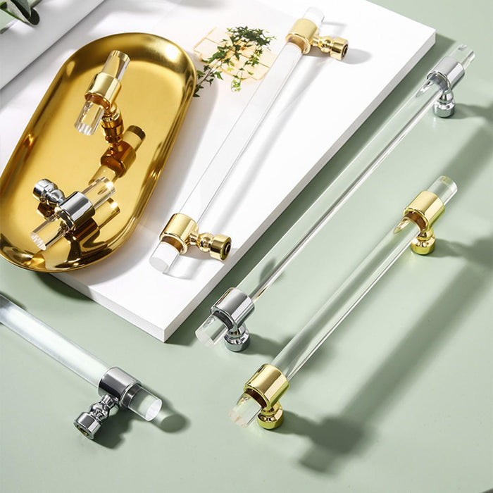 Elevate your furniture with these contemporary drawer pulls that blend sleek acrylic with warm brass accents. Perfect for kitchen cabinets, dressers, or bathroom vanities, these handles deliver both style and functionality.